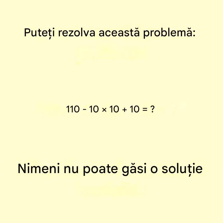 Să rezolvăm pas cu pas ecuația: 110 − 10 × 10 + 10, folosind metoda PEMDAS/BODMAS.