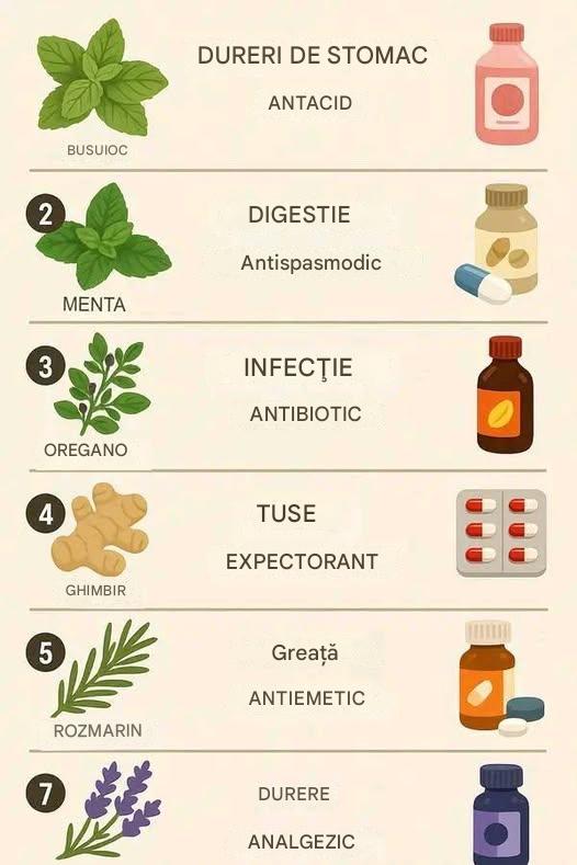Busuiocul ajută la durerile de stomac și arsurile la stomac; poți mesteca frunze proaspete sau poți prepara un ceai de plante relaxant.