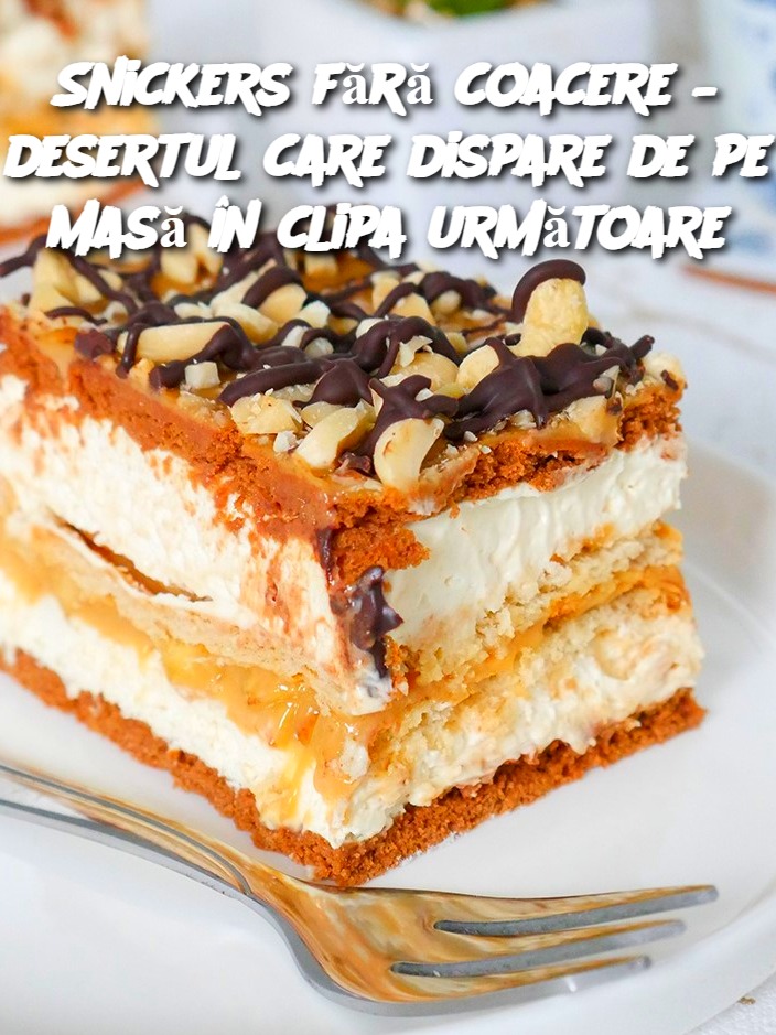 Cauți un desert perfect pentru orice ocazie, care să aibă gustul unei delicii de cofetărie, dar care să nu ceară mult efort? Prajitura Snickers fără coacere este exact asta – o combinație pufoasă de cremă de brânză mascarpone, caramel cremos, nota sărată a arahidei și un strat fin de ciocolată. Ideală pentru o gustare în familie, dar și potrivită ca desert festiv pentru oaspeți.